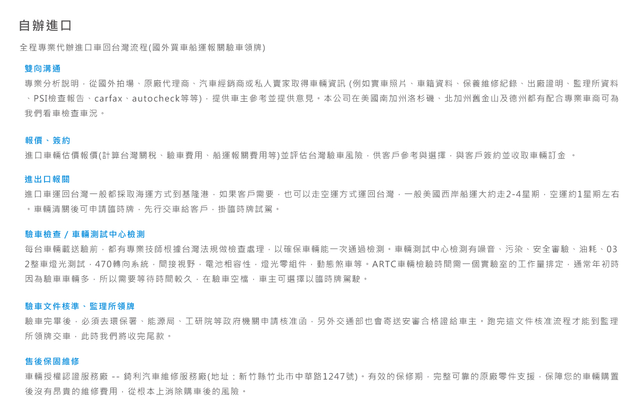 | 進口車成本資料: |